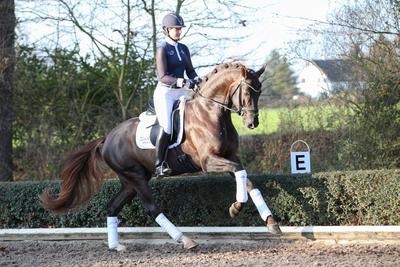 With the noble dark chestnut Belvedere DB the now four year old favourite of the westphalian saddle licensing in 2019 settles down at our stable in Voerde, Germany.